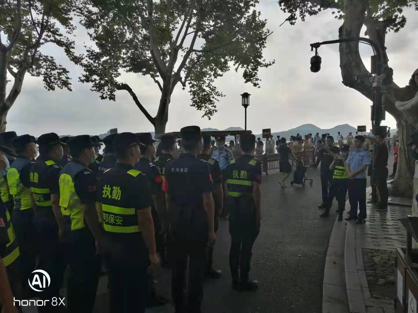 风雨里,我们的步伐铿锵,烈日下,我们的热血滚烫,将使命责任扛在肩上,安保战士们用执着坚守,护卫西湖景区的安全畅通,用自己的汗水编织着节日里的平安、祥和,践行了“保一方平安、促社会和谐”的企业核心价值观,以实际行动向祖国母亲献礼!