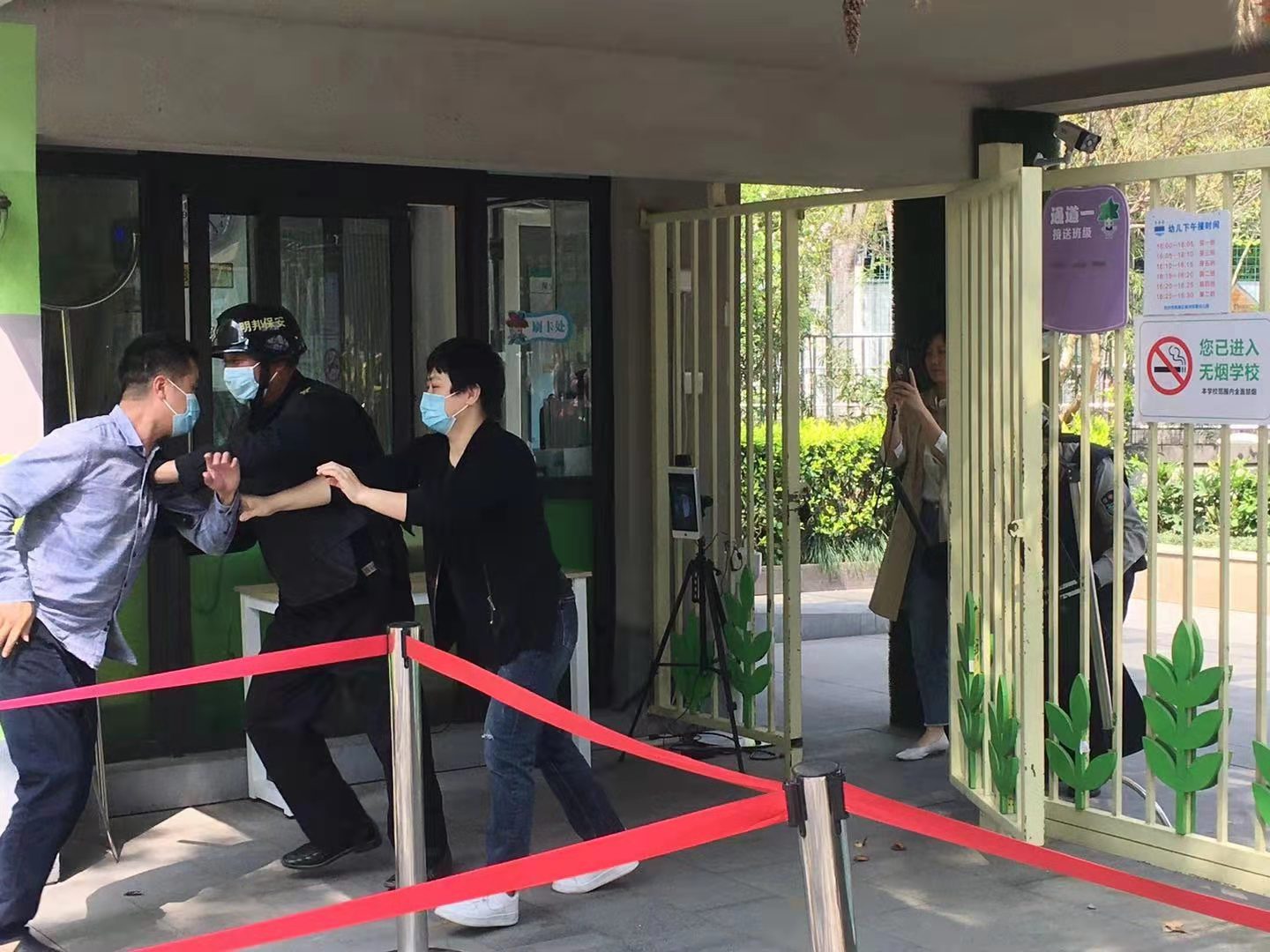 “这里是学校,请问有什么事情,学校不允许外人进入,如果您要强行进入校园,我们将会采取行动。”保安员边说边采取行动,将一名欲强行进入校园的男子制服。这是2月15日上午,在大禹路同仁幼儿园举办的“防外来暴力反恐演练”活动中的一个场景,这场在开学前的演练,为新学期守住“安全阀”。