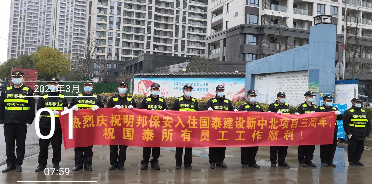 沐浴着春日的阳光,享受着暖风的吹拂。明邦保安迎来了入驻国泰建设新中北项目第三个春秋,回顾这三年,是从无到有的三年,是艰难起步逐渐成长的三年,是执着追求热枕奉献的三年!三年的艰辛、三年的拼搏、三年的奉献、我们的工作成功的获得甲方领导的认可,工作中,我们一丝不苟,尤其在疫情防控战斗中,涌现出无数最美“逆行者”,他们在各自岗位上抒写“舍小家为大家”的感人情怀,诠释着为项目的初心使命。