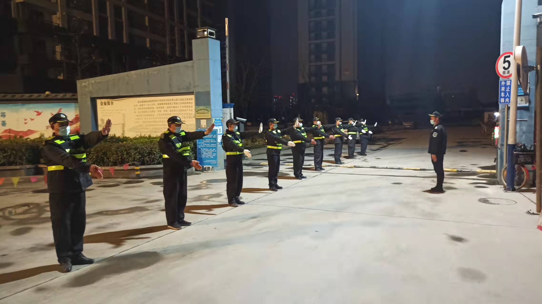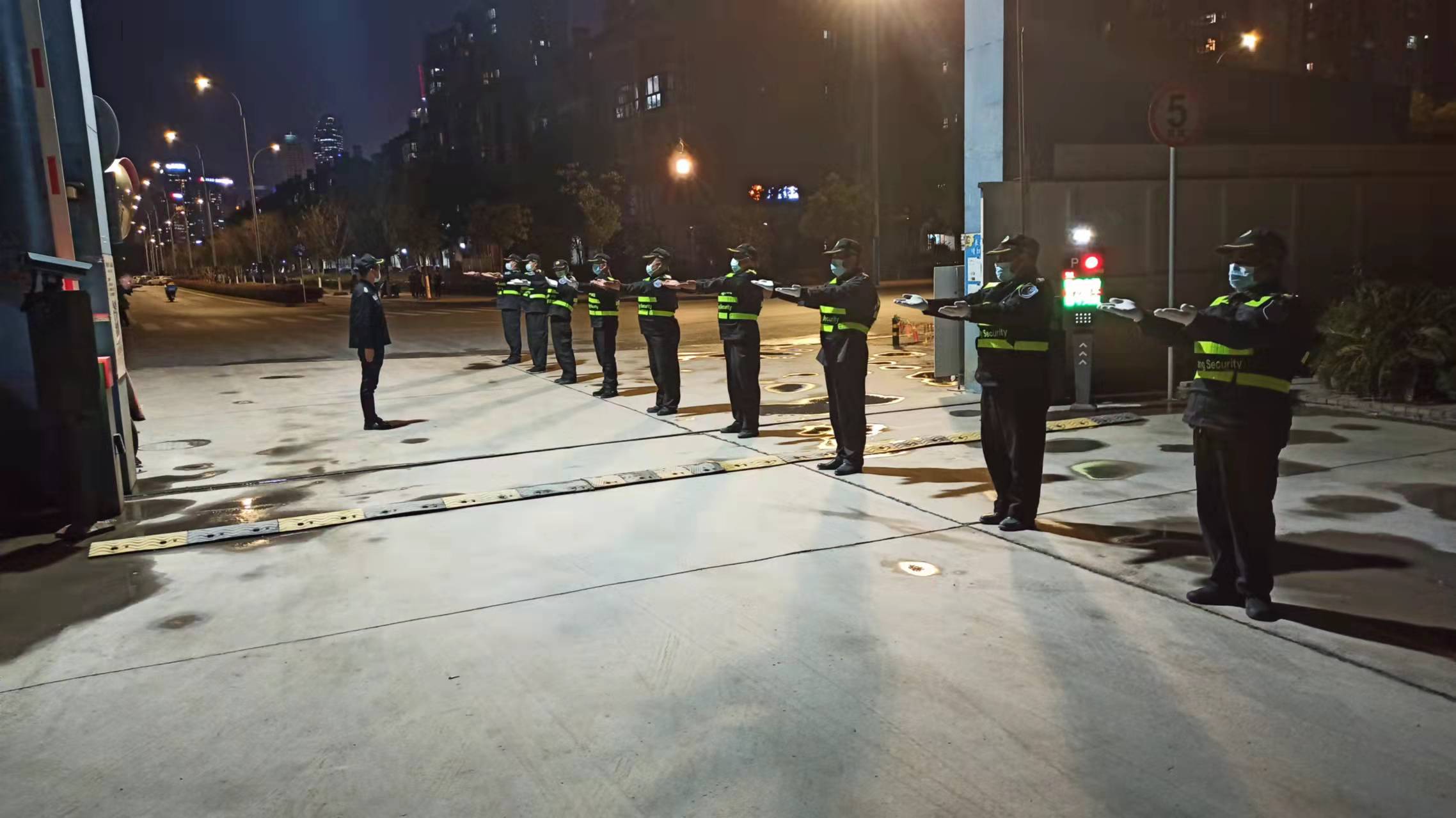 为进一步提高保安队伍执勤规范化水平,加强保安队员的交通指挥效能,保障道路交通安全畅通,3月10日下午,按各项目部实际情况,启动年度保安培训计划,同时其它项目保安队员同时开展培训拉练活动。