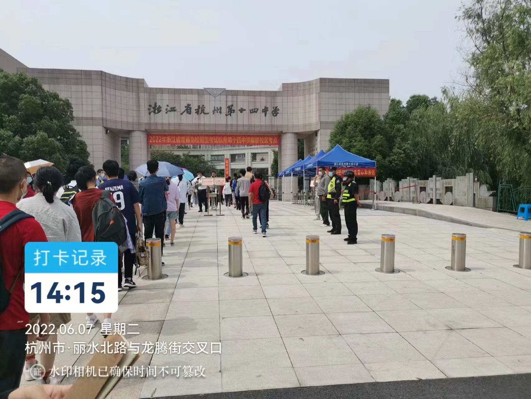 2022年6月7日-9日全国高考如期举行,千万莘莘学子,怀抱着憧憬,肩负着期待,开始为梦想冲刺。在此期间,明邦保安协助杭州市第十四中学,维护高考期间社会治安秩序稳定,保障考场的安全秩序,为考生营造良好的高考环境。