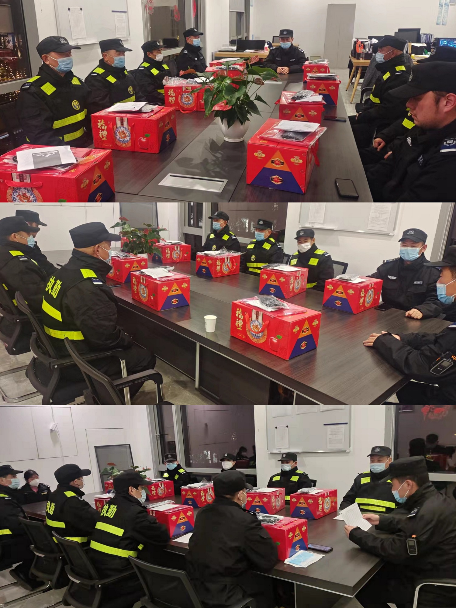 春节在中国人心目中是一个家人团团圆圆的重要节日,但由于工作性质的特殊性,绝大部分保安员需要在春节期间坚守岗位。公司为鼓励和感谢这部分保安员的付出,在节前对春节期间需坚守岗位的重点单位保安队伍进行走访、慰问,希望保安员能充分发扬奉献精神,在春节期间坚守岗位,为杭州市春节期间的安保工作作出贡献。