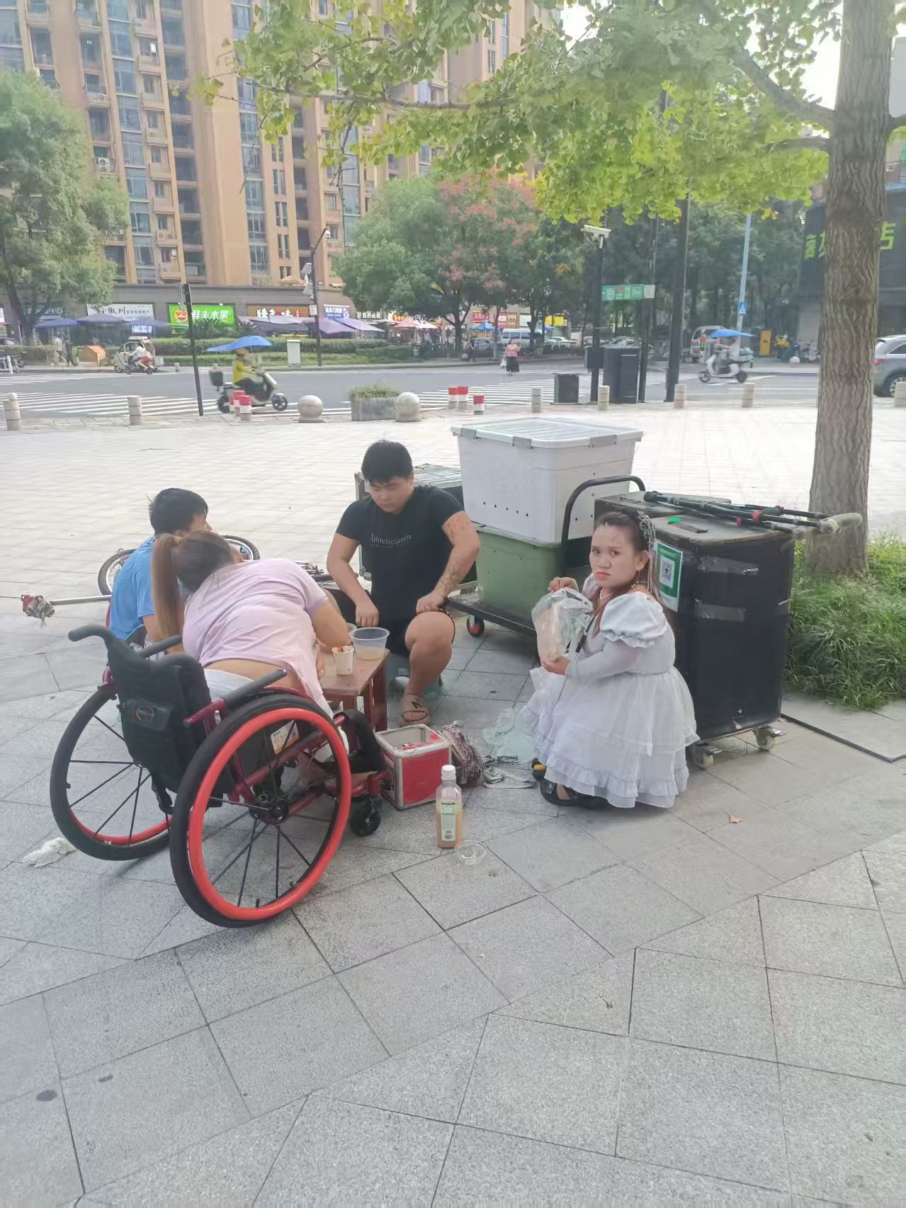 9月18日,东方福邸一期小区广场上演了一场令人揪心又敬佩的对峙:一伙疑似以“残疾人表演”为名、实则涉嫌欺诈的流窜团伙,再次现身小区广场进行所谓“杂技表演”并兜售商品,试图博取居民同情牟利。