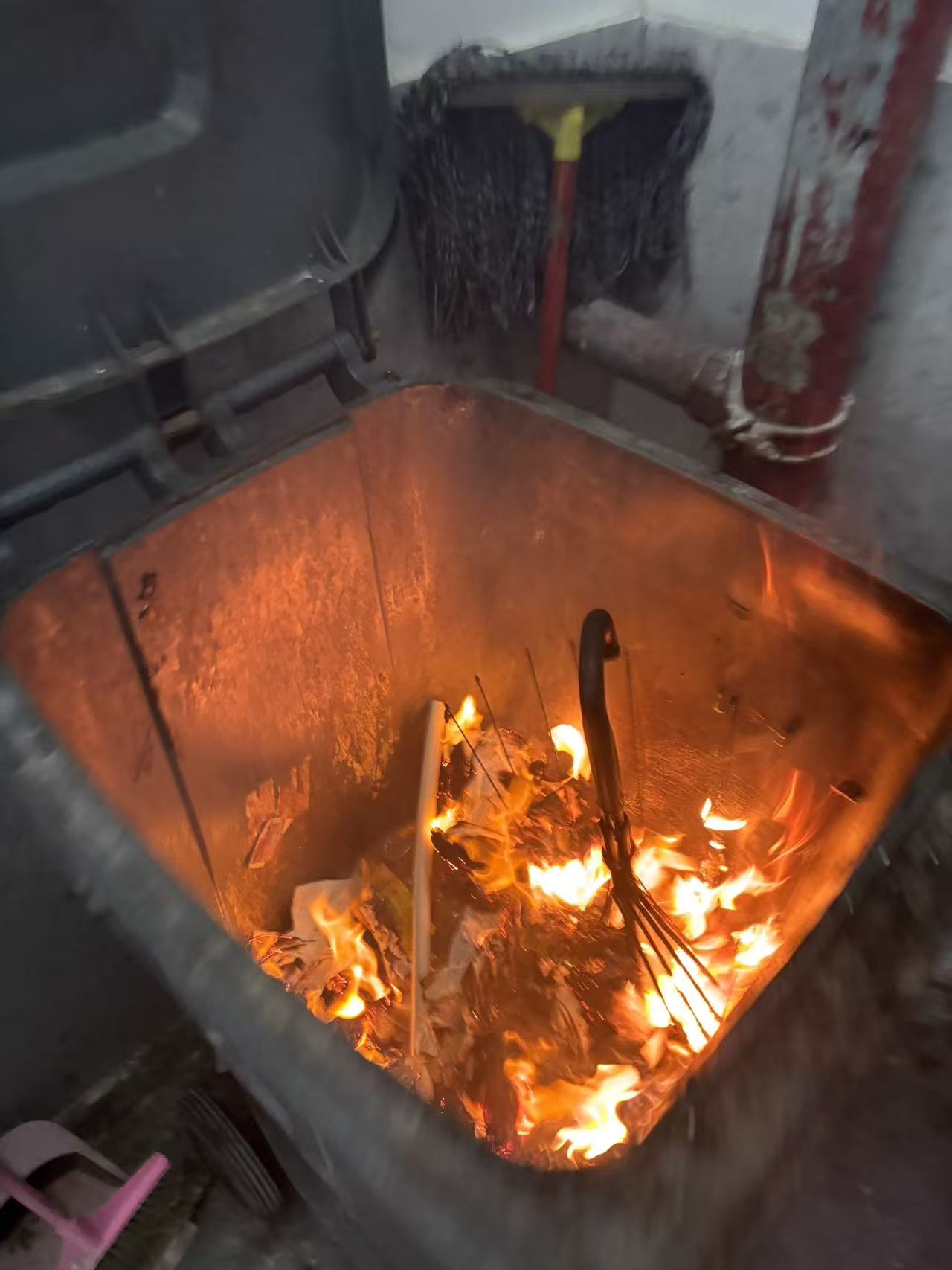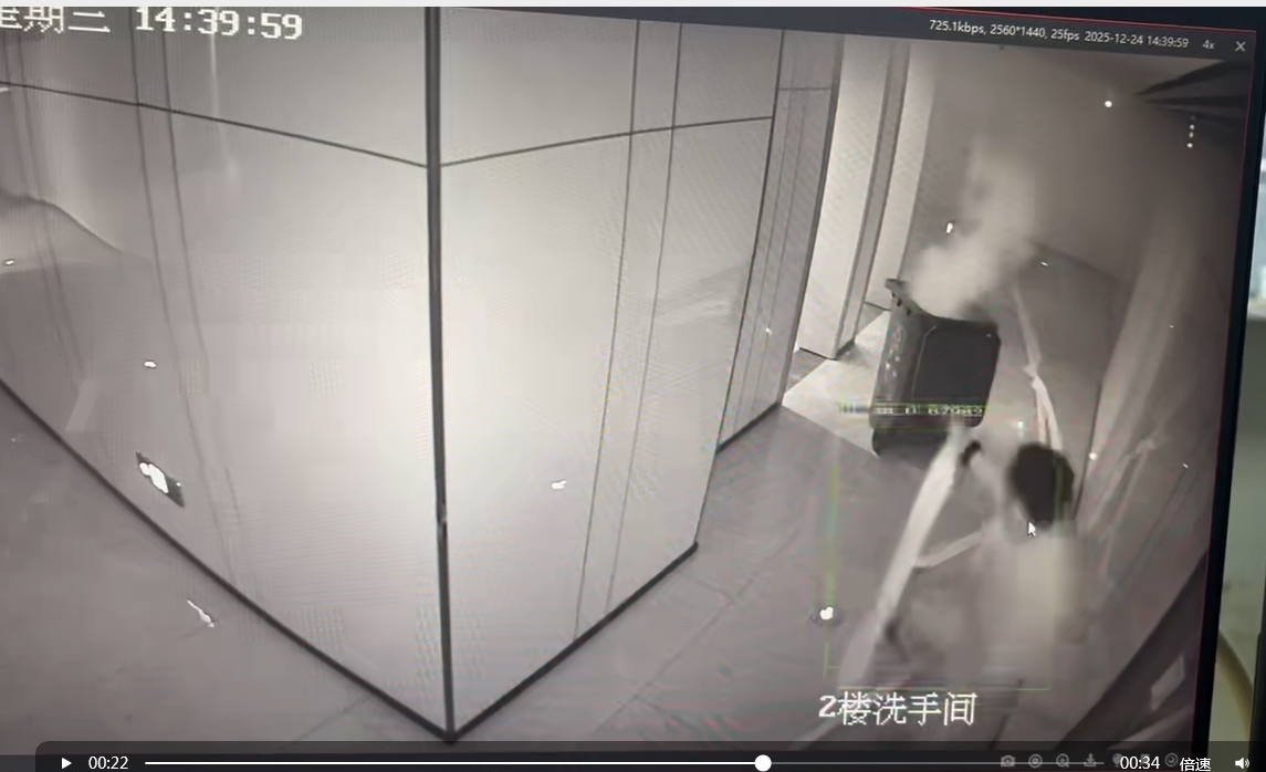 “叮 ——” 监控画面里,2 楼洗手间的垃圾桶突然窜起明火!